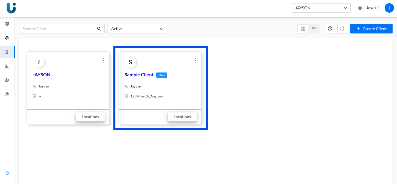 Once the client is created, you will be redirected back to the Client Dashboard, where you can view and manage the newly added client. You can now proceed to assign locations, upload documents, and start working with the client’s data.