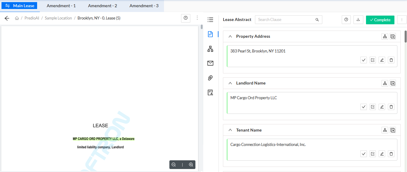 The AI-CoPilot is a powerful, no-code platform integrated into PredioAI that helps automate the process of lease abstraction. It learns from manual annotations made on lease document clauses and continuously improves its ability to extract and classify important clauses and obligations. Operating in *Co-Pilot Mode*, this solution assists with the abstraction process while ensuring that every task is followed by a manual review, providing accuracy and quality assurance. The AI-CoPilot excels in extracting hundreds of clauses with precision, saving time and reducing human error in the lease management process.