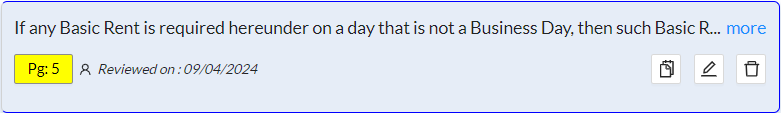 Reviewing predicted clauses is an essential part of ensuring the accuracy of the AI's abstraction process. By manually reviewing and confirming the AI's predictions, you ensure that the extracted data is correct. If the AI has assigned a clause correctly, you can mark it as reviewed to indicate that it has been verified. This helps improve the AI’s performance over time and ensures accurate data management.